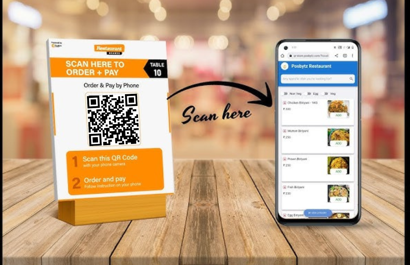 Customers can use their smartphones to scan the QR code on their table, which directs them to the digital menu.The digital menu allows customers to browse through items, select their choices, and place orders directly from their devices.Orders are sent to the kitchen or bar, reducing the need for physical menus, paper order slips, and direct interaction with waitstaff.